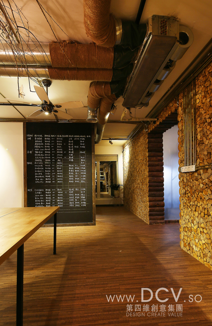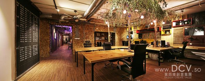 本方案是空间设计和品牌设计完美结合的工作室,原生态是本次的设计理念,饰面多用老木板、老木门、截面木片等生态环保材料,方案设计中保持了原顶面,空调管道、电线走向、开关插座全为明装,从这一点就和之前所看到的设计与众不同,在材料的选择上,也选用的是铜管、铁皮管道、金属色的插座开关。