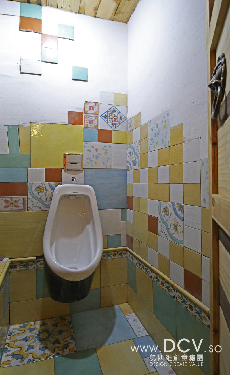 卫生间外墙用的老木板做旧处理,卫生间内部一侧用老木板一侧用规格不一的糖果墙砖,像设计一样既有成熟的思考,同时有跳跃的思维。