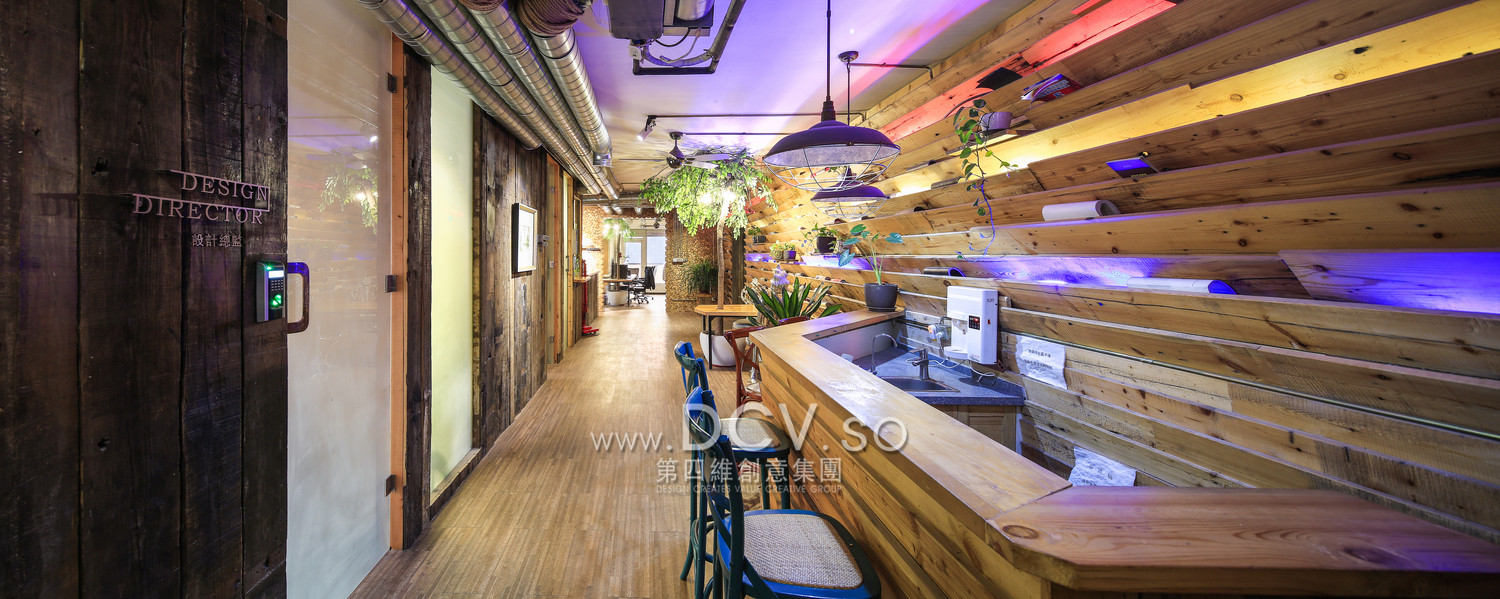 入户的右手边是品牌设计部,左手经过走廊是空间设计部,但整个空间却没有门相隔,而且走廊中间设有水吧,这样能够消除隔阂,促进两个部门的沟通和交流,一起团结上进,把品牌和精神发扬光大。