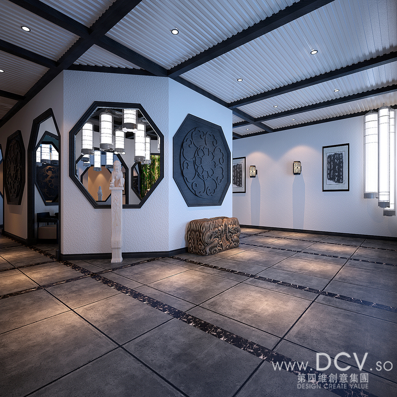 黑白灰色系新中式休闲场所-西安正德商务会所设计